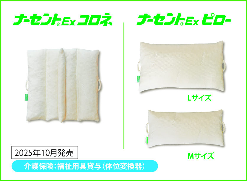 ひとつで様々な使い方ができる『ナーセントExコロネ』と、大きすぎず扱いやすい枕型の『ナーセントExピロー』で、